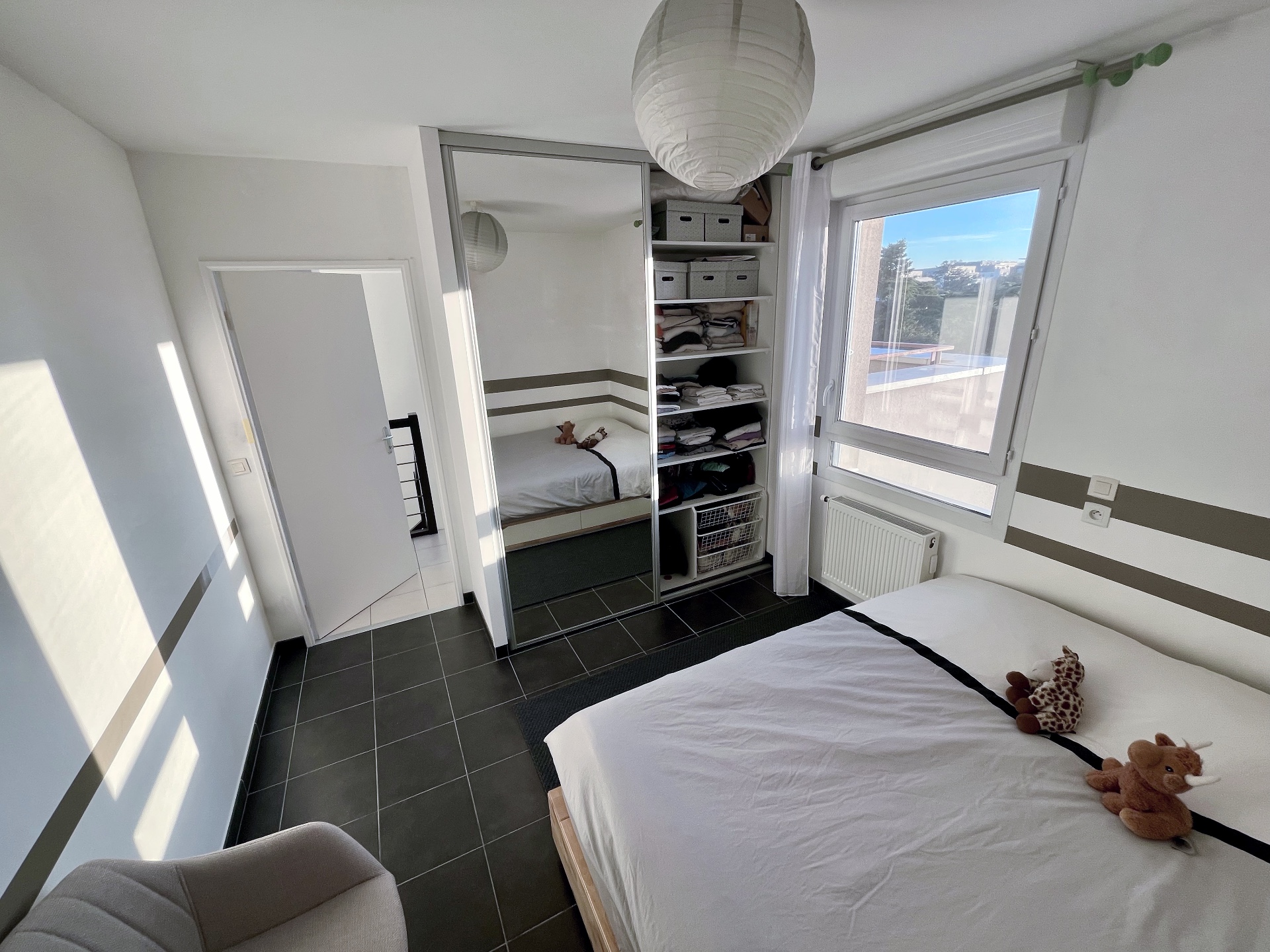 Au centre-ville, rare duplex dans une résidence fermée et sécurisée de 2010, à 3 minutes du tram T2, des écoles et des commerces.