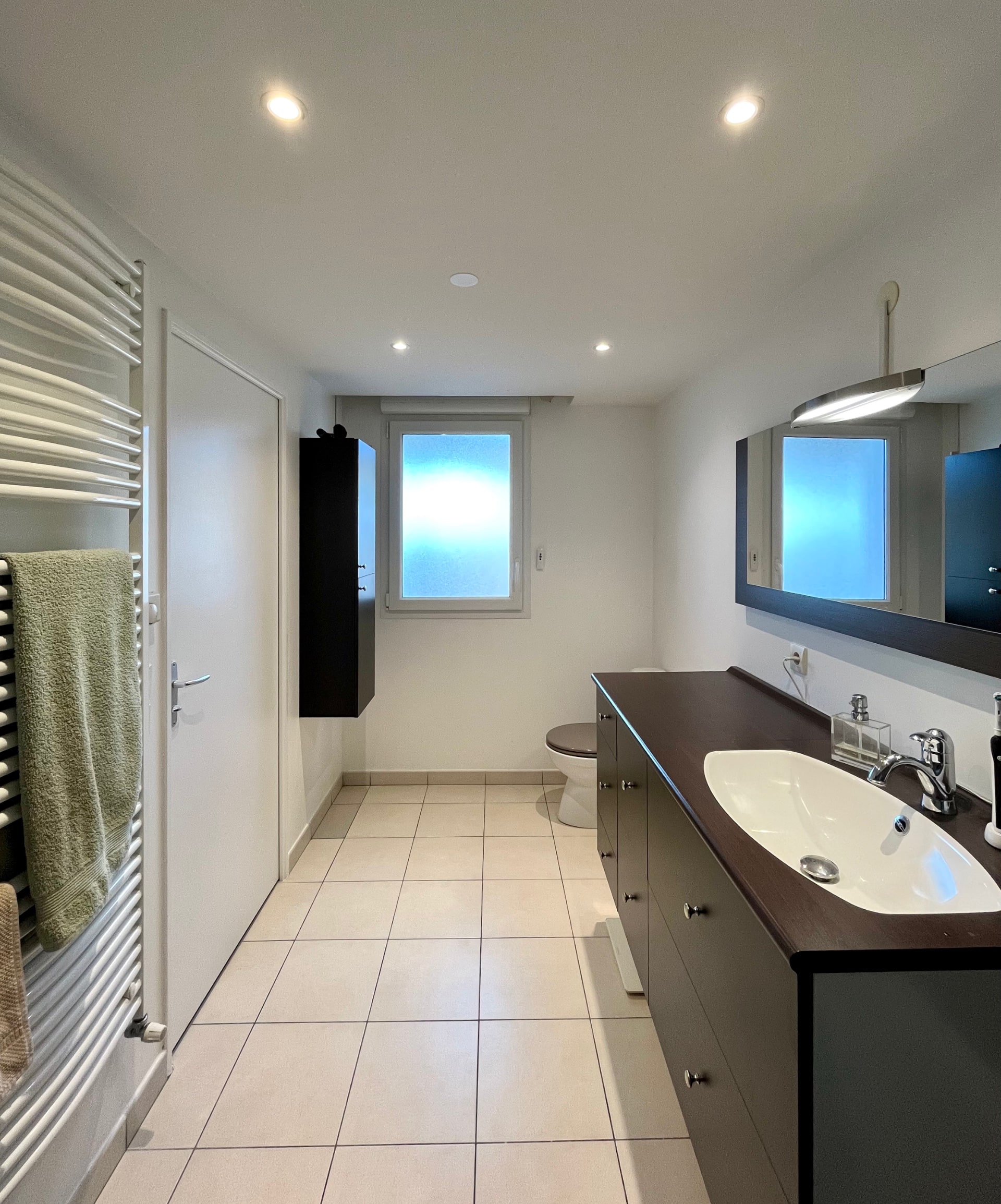 Fermez la porte donnant au salon et vos invités auront leur espace nuit avec salle de bain.