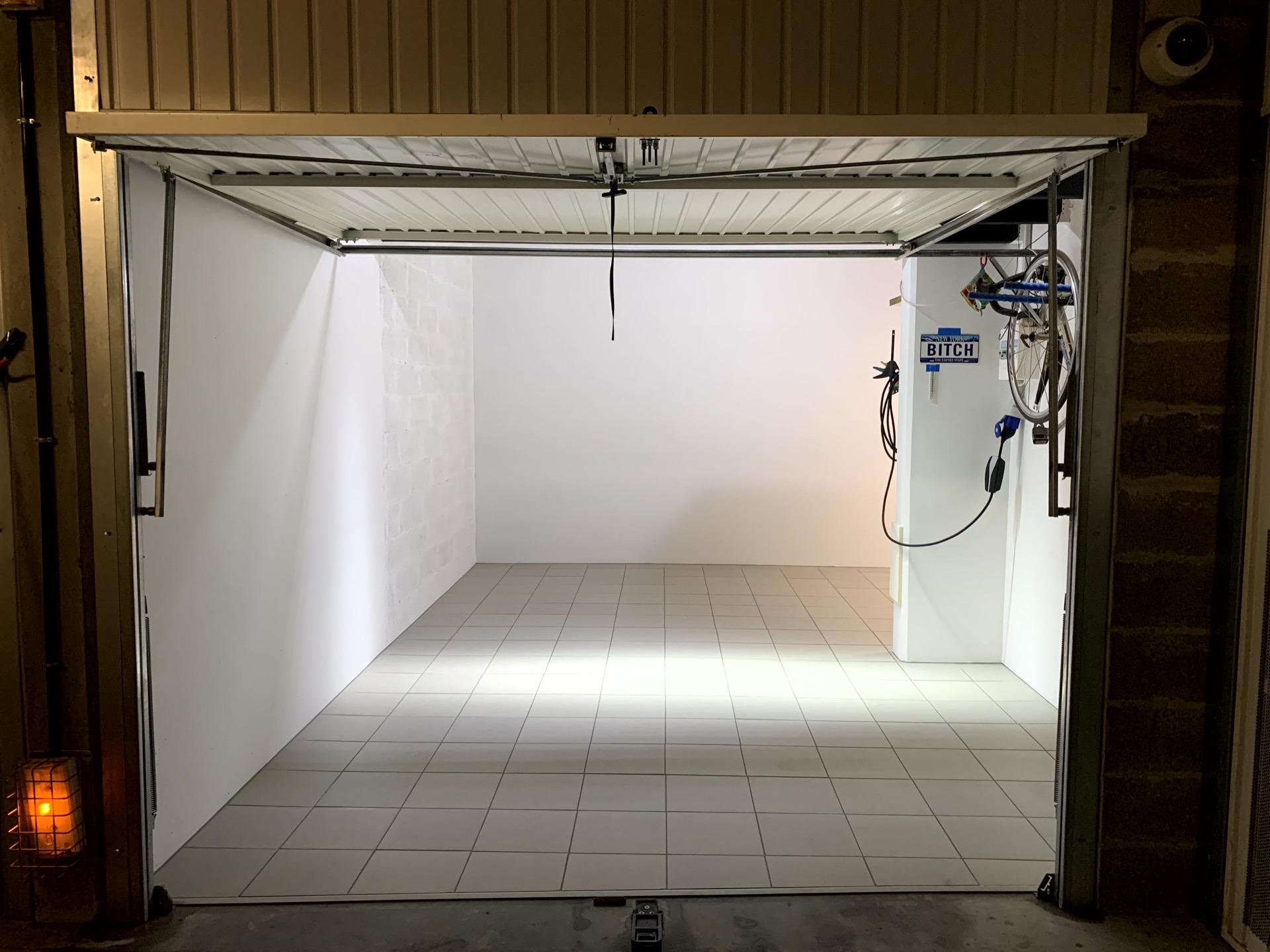 Le garage, en forme de L mesure environ 24 m² avec une hauteur de plafond d'environ 3.3