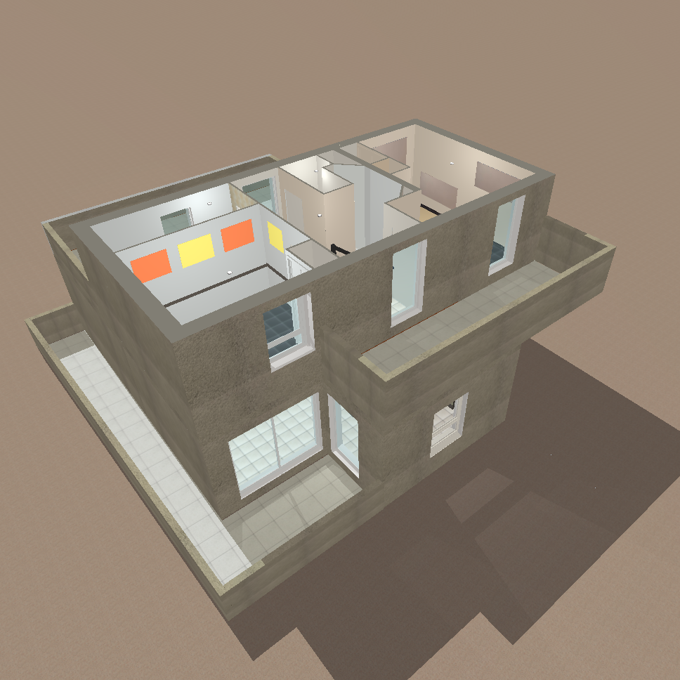 Les murs extérieurs sont en béton banché avec isolation par l'extérieur (polystyrène), le chauffage