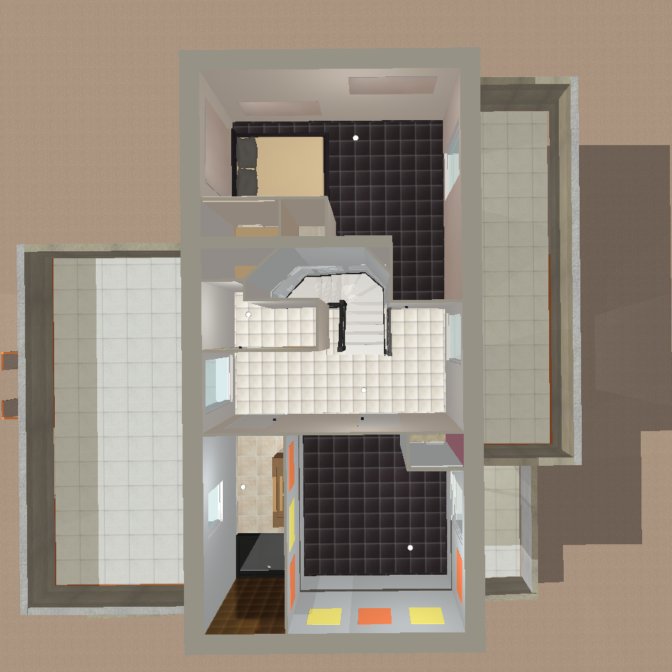 À l'étage, le dégagement traversant EST-OUEST est traversé par les levers et couchers de